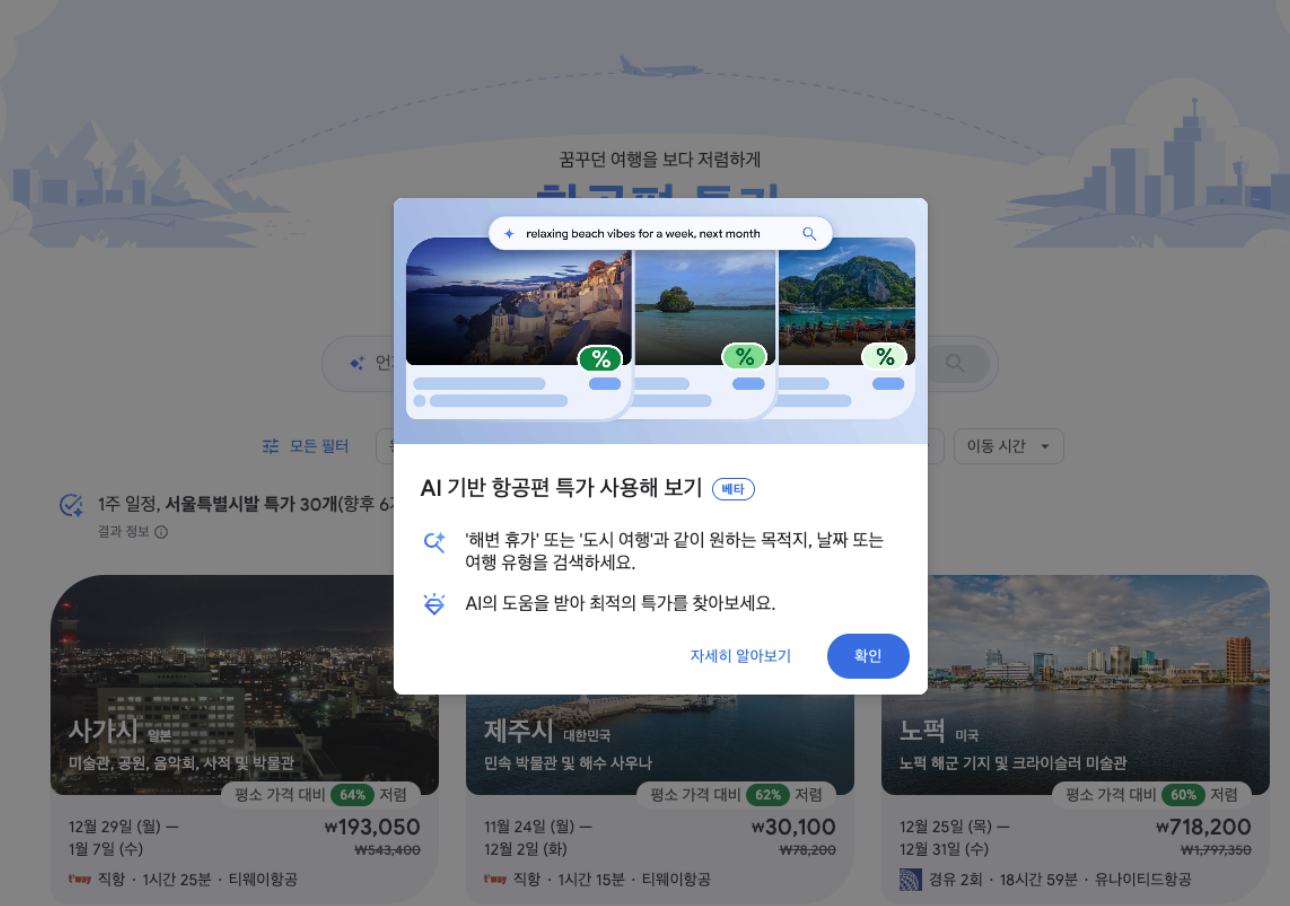 구글 AI 여행 도구 한국 서비스 확장 : 항공권 예약부터 여행 계획까지 한 번에 해결되는 시대